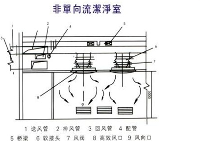墻板或高架地板回風(fēng)。氣流非直線型運(yùn)動(dòng)而呈不規(guī)則之亂流或渦流狀態(tài)。此型式適用于潔凈室等級(jí)